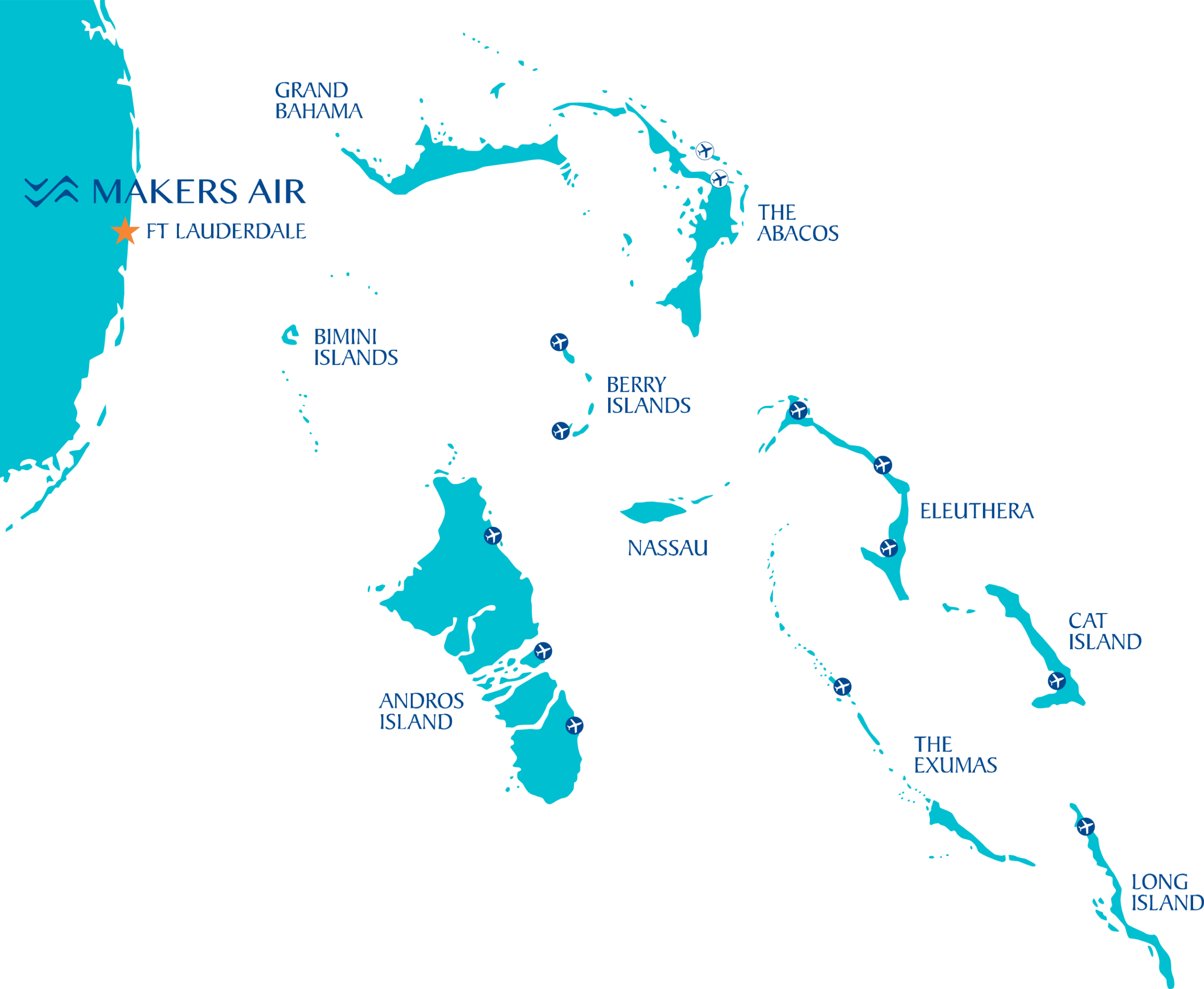 Explore the Bahamas with Makers Air, your gateway to the Out Islands. With service to a wide range of island destinations, we make getting to paradise effortless. From hand-picked hotels to unforgettable local experiences, we provide the insight you need to plan the perfect escape. Whether you’re flying on one of our scheduled routes or chartering from Florida or within the Bahamas, Makers Air delivers a seamless, elevated travel experience. Start planning your island getaway today!